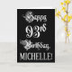 93rd Birthday: Fancy, Elegant Script + Custom Name Card
