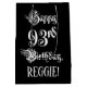This ornate and luxurious birthday themed gift bag design features the message “Happy 93rd Birthday,” in elegant script style text, on a black colored background. It also has an editable recipient name. A birthday themed gift bag like this might be a respectable way to wrap a gift or present being given to somebody who is celebrating their 93rd birthday. [~Z0000557]