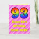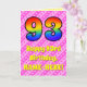 93rd Birthday: Pink Stripes & Hearts, Rainbow # 93 Card