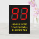 The front of this silly and nerdy birthday greeting card design features a large number "93" having a red seven segment digital display inspired appearance, along with the message "Have a Great 93rd Birthday," and a custom name, on a black colored background. The inside features a custom birthday greeting message, or could perhaps be cleared and left blank if a message is to be written by hand instead. A customizable birthday card like this might be a fun way to send a message in celebration of somebody’s ninety third birthday. [~Z0000386]
