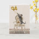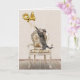 Gray tabby cat with gold foil balloons on an old-fashioned chair for 94th birthday.