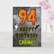 The front of this spooky and scary Hallowe’en themed birthday greeting card design features a large number “94” and the message “HAPPY BIRTHDAY,”, plus an editable name. There are also depictions of a bat and a ghost on the front. The inside features an editable birthday greeting message, or could perhaps be cleared and left blank if a message is to be written by hand instead. A customizable birthday card like this might be a fun way to acknowledge somebody’s ninety fourth birthday that also falls on October 31st (Halloween). [~Z0000547]