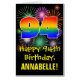 The front of this fun, colorful, and cheerful birthday themed greeting card design features a large number “94” with a rainbow spectrum gradient inspired pattern, along with the message “Happy 94th Birthday,”, and a personalized recipient name. The front additionally has a multicolored background pattern inspired by the appearance of bursting celebratory fireworks. The inside features a customizable birthday greeting message, or could perhaps be cleared and left blank if a message is to be written by hand instead. A customizable birthday card like this might be a fun way to send a message celebrating somebody’s ninety fourth birthday. [~Z0000526]