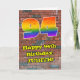 This fun and vibrant urban graffiti and street art inspired birthday greeting card design features a large number “94” with a multicolored rainbow spectrum gradient inspired pattern, along with the message “Happy 94th Birthday,”, and a personalized name. The background of the front features a brick wall pattern. The inside features a custom birthday greeting message, or could perhaps be cleared and left blank if a message is to be written by hand instead. A colorful, customized birthday greeting card like this might be sent to celebrate somebody’s ninety-fourth birthday. [~Z0000586]