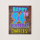 This fun birthday themed puzzle design features the message “HAPPY 94TH BIRTHDAY,” having a colorful, vibrant, graffiti and urban street art inspired appearance, in addition to an editable recipient name. The background features a pattern inspired by the look of a brick wall. A fun, personalized birthday puzzle like this might be a fun way to send a birthday greeting message to somebody who is celebrating their ninety-fourth birthday. [~Z0000532]