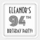 This stylish ninety-fourth birthday party/celebration square sticker design features a custom name, a fancy art deco style inspired number “94th”, the message “BIRTHDAY PARTY!”, and a multi-line border. Luxurious stickers like these might be distributed or used at a birthday party held for somebody in celebration of their 94th birthday, or perhaps used when wrapping presents/gifts or preparing invitations for such an event. [~Z0000618]