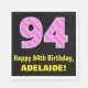 94th Birthday: Pink Stripes and Hearts "94" + Name Napkins