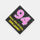 This fun and joyful birthday themed paper napkin design features a large number "94" having a dark pink and light pink striped pattern containing heart shapes. It also features the birthday greeting message "Happy 94th Birthday,", and a customizable name. Paper napkins like this might be nice to have at a party being held to celebrate somebody’s 94th birthday. It might also be a fun choice for somebody whose birthday falls on Valentine's Day (February 14th), due to its loving heart symbols and colors. [~Z0000436]