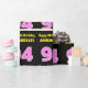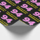 This fun and joyful birthday-themed wrapping paper design features a large number "94" with a dark pink and light pink striped pattern containing heart shapes. It also features the birthday greeting message "Happy 94th Birthday,", and a customizable recipient name. Wrapping paper like this might be used when giving a gift or present in honor of somebody’s ninety fourth birthday. It might also be a fun choice for somebody who has a birthday that falls on Feb. 14th (Valentine's Day), due to its loving heart symbols and colors. [~Z0000435]