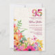 95 Years Flowers Floral Linen 95th Birthday Invitation