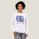 Four purple and blue vertical brush strokes create a vibrant frame for blue and white larkspur flowers. Larkspur also known as delphinium is the July Birth Month Flower. Brush strokes are one of the hottest trends in pattern design this summer. One line of text lets you customize your t-shirt. In this case, it is meant for the birthday celebrant to wear at their party.