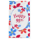 Orange, red, and blue daisy flowers on white background for 95th birthday.