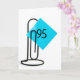 An aqua reminder note on a giant black paper clip on white for a 95th birthday.