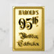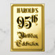 The front of this fancy and opulent ninety-fifth birthday party/celebration foil announcement card design features the message “95th Birthday Celebration” in ornate script-style text. It also has a personalized name. The back features personalized details about the event, such as the date, time, venue/place, and any other useful information. Elaborate, elegant, personalized invitations like these might be used to invite guests to a birthday party being held to celebrate somebody’s ninety-fifth birthday. [~Z0000596]
