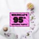 The front of this upbeat ninety-fifth birthday celebration foil invitation card design features a personalized name, a large number “95th”, the message “BIRTHDAY PARTY!”, and a border. The background of the front has a joyful light pink and dark pink stripes pattern containing heart shapes. The back features personalized details about the event, such as the date, time, venue, and any other useful information. Personalized invitations like these might be a fun way to invite attendees/guests to a birthday gathering being held in celebration of somebody’s 95th birthday. [~Z0000603]