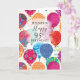 This festive 95th birthday card features colorful balloons in shades of pink gold, purple and turquoise on a white background. Personalize with a name for a unique birthday card. The inside may also be customized with your own greeting or use as is with your name for signature. Designed by world renowned artist ©Tim Coffey.