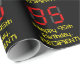 This geeky and nerdy birthday themed wrapping paper design features a large number "95" with a red seven segment digital display inspired appearance, along with the message "Happy 95th Birthday," and an editable name in geeky computing-inspired yellow text, on a black colored background. Wrapping paper like this might be used when wrapping gifts being given to somebody in celebration of their 95th birthday. [~Z0000387]