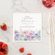 Perfect table decor for an September birthday party. Aster is the birth flower for that month. It forms a pretty watercolor bottom border on this floral personalized napkin. The birthday guest of honor's name, age and birthdate are placed above it using elegant calligraphy and typography. All text is editable.