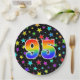 This cheerful, colorful, and fun paper plate design features a large number "95" containing a rainbow spectrum gradient inspired pattern. The background features a pattern of colorful star shapes. Paper plates like this might be fun to use at a party being held to celebrate somebody’s ninety fifth birthday, or a couple’s ninety fifth anniversary, or some other ninety fifth event. [~Z0000493]
