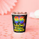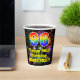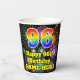 This fun and colorful birthday themed paper cup design features a large number “96” with a rainbow spectrum gradient inspired pattern, along with the message “Happy 96th Birthday,”, and a customizable name. The background features a multicolored pattern inspired by the appearance of bursting celebratory fireworks. Colorful, vibrant paper cups like this might be fun to have at a birthday party being held to celebrate somebody’s 96th birthday. [~Z0000539]