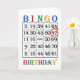 97th Birthday card. Say Happy Birthday to a bingo player with a bingo card. The age is circled in red. A bingo crazy player will get a huge kick out of this card! Copyright Norma Cornes.