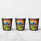 This joyful and exciting birthday paper cup design features a large number “97” with a rainbow spectrum gradient inspired pattern, along with the message “Happy 97th Birthday,”, and a customizable name. The background features a vibrant and colorful bursting celebratory fireworks inspired pattern. Vibrant, colorful paper cups like this might be fun to use at a birthday party being held to honor somebody’s ninety seventh birthday. [~Z0000539]