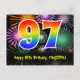 97th Birthday – Fun Fireworks Pattern + Rainbow 97 Postcard