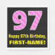 This fun and joyful birthday themed paper napkin design features a large number "97" with a striped pattern containing heart shapes colored light pink and dark pink. It also features the birthday greeting message "Happy 97th Birthday,", and a customizable name. Paper napkins like this might be fun to use at somebody’s 97th birthday celebration. It might also be a fun choice for somebody whose birthday falls on February 14th (Valentine's Day), due to its loving heart symbols and colors. [~Z0000436]