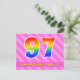 97th Birthday: Pink Stripes & Hearts, Rainbow 97 Postcard