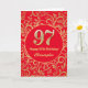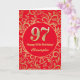 97th Birthday Red and Gold Floral Pattern Card