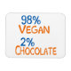 Funny vegan shirts, clothes, bags and products let the world know you are mostly vegan, 98% vegan 2% chocolate. From Big City Vegan.