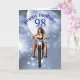 A beautiful girl riding a bike through the stars in the sky. A very different birthday card for the man who likes his motorcycles.