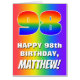98th Birthday: Colorful, Fun Rainbow Pattern # 98 Card