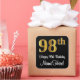 This elegant, sophisticated, and stylish birthday square sticker design features a large ordinal number “98th” having an imitation/faux gold-like look, plus the birthday greeting message “Happy 98th Birthday,” and a personalized name in a script-style font. It also has a black-colored background. Sophisticated stickers this might be used when wrapping a gift or present in honor of somebody’s 98th birthday, or perhaps may be handed out to the guests at a birthday celebration or party. [~Z0000517]