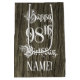 This luxurious and fancy birthday-themed gift bag design features the message “Happy 98th Birthday,” in lavish script style text, on a faux wood look inspired pattern background. It also features a custom recipient name. A birthday themed gift bag like this might be a respectable way to wrap a gift or present being given to somebody who is celebrating their 98th birthday. [~Z0000558]