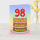 98th Birthday — Fun Cake & Candles, w/ Custom Name Card