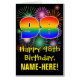 The front of this colorful, vibrant, and fun birthday themed greeting card design features a large number “98” having a rainbow spectrum gradient inspired pattern. It also features the message “Happy 98th Birthday,”, and a customizable recipient name. The front additionally has a vibrant and colorful bursting celebratory fireworks inspired background pattern. The inside features a custom birthday greeting message, or could perhaps be cleared and left blank if a message is to be written by hand instead. A personalized birthday card like this might be a fun way to acknowledge somebody’s ninety eighth birthday. [~Z0000526]