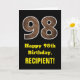 98th Birthday: Name, Faux Wood Grain Pattern "98" Card
