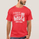 My 11 yo wore adult XL (5’7” 165#). The 8yo is small framed. She wore adult small and tied it in the back. Grandma wore adult large with long sleeve shirt underneath. Tall girl adult medium. Dark haired male adult large. Good quality dark Heather gray, Gildan brand shirt. -it was next up from basic choice and cost about $20 per shirt. Not too thick or thin. Washed and dried well, no major shrinkage. Not see-through. Can wear a bra under it fine. Screen print is just as shown and well done, front and back.