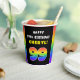This joyful and fun birthday themed paper cup design features the number “99“ with a vibrant multicolored rainbow spectrum inspired gradient pattern, along with the message “HAPPY 99th BIRTHDAY,”, and a personalized recipient name. Bold paper cups like this might be used when hosting a party for somebody in celebration of their ninety ninth birthday. [~Z0000639]