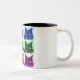 style multi-colored cat collage on ceramic mug