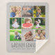 Custom made to order sherpa blanket personalized with your family photos and monogram. Add your grandchildren's names or other custom text with space for 9 square Instagram photos. Use the design tools to choose any background color, add more photos and edit the text fonts and colors to create a unique one of a kind throw blanket design. Custom photo blankets make a great gift for grandparents!