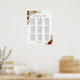This beautiful 9 table wedding seating chart features a rustic boho chic design with hand painted watercolor roses in shades of rust orange, coral peach, and burnt umber, along with eucalyptus leaves and autumn garden foliage. It has seating assignments for 90 people with 10 seats per table, with an elegant script calligraphy title, and space for the names of the couple and wedding date below. Wonderful way to color, style, and class to your wedding reception while making it easy for your guests to find their seats.