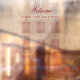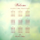 All text is burgundy red. The word Welcome is written in an elegant calligraphic script, the rest in caps. The 9 tables are on 3 rows. Above them and under the word Welcome, there is the message "Please find your seat!". In the lower part, under the tables, there is a small heart and the names of the bride and groom, written in the same calligraphy.