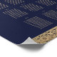 This wedding seating chart has 9 tables. The background is navy blue. It has floral golden borders with intricate wild roses decorations. The names of the bride and groom and the title Welcome are written in an elegant calligraphic script, the rest in caps. All text can be personalized and has a golden color similar to the gold roses on the borders.
