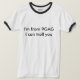 The product was as advertised. The message is succinct and is an eye-catcher. This shirt gets a heap of feedback from onlookers. Most ask you to stand still while they finish reading the definition. They then either give you the thumbs-up or nod any walk away. Either way, its a real conversation starter and so far, no one has disagreed enough with the print to verbalize. The material is fairly light, but the print is stable enough to withstand washes and some activity. A fair deal. Readable and durable.