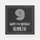 This vintage appearance birthday themed paper napkin design features a large Art Deco look inspired number "9", the message "HAPPY 9th BIRTHDAY,", an editable name, and a border pattern consisting of lines. Birthday themed paper napkins like this might be fun to use at a celebration being held to honor somebody who is celebrating their ninth birthday. [~Z0000395]
