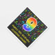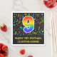 This fun, colorful, and vibrant birthday-themed paper napkin design features a large number "9" having a rainbow spectrum gradient inspired pattern. It also features the message "Happy 9th Birthday,", and a customizable name. Part of the background has a colorful music notes and symbols pattern. Fun, personalized birthday themed paper napkins like this might be used at somebody’s 9th birthday celebration. [~Z0000421]