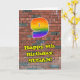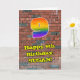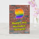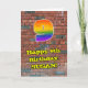 This vibrant and fun urban street art and graffiti themed birthday greeting card design features a large number “9” with a multicolored rainbow spectrum gradient inspired pattern, along with the message “Happy 9th Birthday,”, and a customizable name. The background of the front features a brick wall pattern. The inside has a personalized birthday greeting message, or could perhaps be cleared and left blank if a message is to be written by hand instead. A vibrant, editable birthday greeting card like this might be sent to celebrate somebody’s ninth birthday. [~Z0000586]