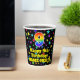 This joyful and fun birthday paper cup design features a large number “9” with a rainbow spectrum gradient inspired pattern, along with the message “Happy 9th Birthday,”, and an editable name. The background features a colorful pattern featuring many star shapes with different colors and sizes. Vibrant, colorful paper cups like this might be fun to have at a birthday party/celebration being held to honor somebody’s 9th birthday. [~Z0000540]